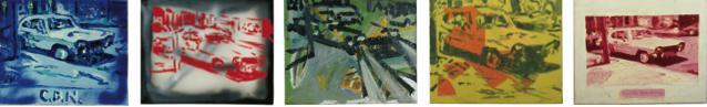 在“亲爱的画家,请给我画画”系列中,他将矛盾的位置拧在了一起,逆转与反向时他最喜欢的方式。在“你们中的一个”里,一些图像是直接从反转的摄影图片中直接挪用过来的。反转对他而言,成为了在不同方位之间移动的一种模式,就好像对客体对象和技巧进行了动词变位一样。如果说在《夜晚卡普里》中,厄尔和基彭贝尔格涂抹的是一个现成品的话,那么,后者接着就将现成品作为一幅画而展现出来,例如1982年的《蓝礁湖》(Blue Lagoon), 就是从一个蓝色福特卡普里(Ford Capri)中截下来的,然后将现成物弄成画。所有事物的位置都可以进行探索,任何线形的关系和逻辑性的必要都可以剔除掉。