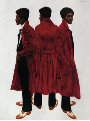 正如展览策展人特雷沃尔•休斯梅克(Trevor Schoonmaker)所说,亨德里克斯人像作品的出现对当时艺术界的种族状态提出了质疑和挑战。艺术家经常刻画那些争取权利和承认的抗议群体,他们的斗争使六七十年代的社会生活四分五裂,但(矛盾的是)同时也打开了新的商业化前景。不过,亨德里克斯从来不把表现对象描绘成抗议者、牺牲品或社会名流。相反,他们都是自己的化身,展示了其自身与主流文化的一系列假想性关系,从单纯的时髦到无视性别的过火装扮,从《查尔斯爵士,别名威利•哈里斯》(Sir Charles, Alias Willie Harris,1972)里小毒贩到《乔治•朱尔斯•泰勒》(George Jules Taylor,1972)里的同性恋知识分子(亨德里克斯的耶鲁同学)。这后两幅画在黑人同性恋、工人阶级和妇女团体开始批判某些黑人解放政治中歧视同性恋、维护中产阶级利益的倾向时,关注并颠覆了传统的黑人男性形象。 “我想创造一张整体绘画,而不只是一幅人像画。”这种观点的激增对亨德里克斯的具象画及其中心组件——人物来说非常关键:他会在几年内画不同情绪、不同姿态的泰勒至少四次以上。但正如艺术家在1976年一次采访中坚持说的那样,“我想创造一幅整体绘画,而不只是一张肖像画。”于是,为取得一种独特的整体性,一幅画里出现了三个查尔斯爵士——艺术家尝试《三美图》(the Three Graces)中的传统处理手法只为最后将其取而代之,而旨在保证图像整体“直面性”(facingness,艺术史学家迈克尔•弗莱德语)的现代主义策略也被颠覆。