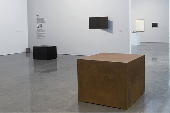 展览试图将曼佐尼放到他的同辈艺术家中去进行比较,在他的作品和托尼•史密斯(Tony Smith)作品之间所产生的相似性和差异性很是明显。史密斯的《黑匣子》,比曼佐尼的《世界基座》稍晚一年,它看上去更像是一件艺术品,而非极简主义的那种试图走出画框、存在于世的“具体物体”,不是绘画也非雕塑。《世界基座》这件作品,是对框架与世界之间的联系进行的一种完全的挑战,而不是仅仅将那种联系省略掉,因此,极简主义的作品很容易落回绘画或者雕塑、设计的窠臼中。《世界基座》作为一个实际的基座,承认了框架作为一种不可避免的中间工具(观念上,社会性的,文字上的)的存在,而与此同时,它也穿越条条框框,进入了世界的混沌之中。通过激进的唯物主义者反身性,消解了绘画,从而打破了主流观念艺术所支持的客体/思想的双重性。对于物质和思想的认可,使得曼佐尼扛起了一项异常艰巨的任务:将抽象和社会与历史的语境联系在一起。他的美国同行劳森伯格(Robert Rauschenberg), 斯黛拉(Stella), 罗伯特•莱曼(Robert Ryman), 苦苦探索的是绘画的边界究竟在何方,它们能走多远且依然不失为绘画,他们提出了一个严格的形式主义的追问,曼佐尼则不同,他认为,抽象总是被体现出来,它是偶发的,而非形而上的,一直暗含在所处的语境中。