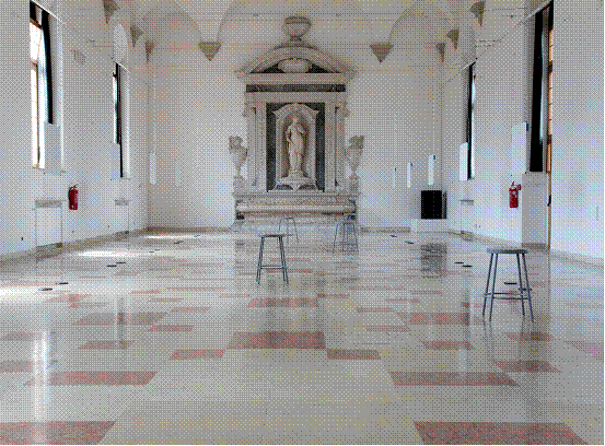 由于每个空间都囊括了这位新墨西哥艺术家每一时期的创作,也是代表了组织的三方,展览给人的感觉是为了适应一系列有限空间而举办的博物馆展。在Ca’Foscari, 声音从一个房间窜到另一个房间,干扰着里面的雕塑作品。在Iuav, 三频录像《世界末日》(1996)是少有的抒情作品,三个艺术家演奏着吉他,几乎与旁边的作品毫无关联,巧妙地超越了学院式的疆界。《紫色和黄色的灯照走廊》(1972)将其连在一起,六十年代末和七十年代初期的声音作品传出“走出我的脑海 走出这间房屋”的旋律,看不见的声音从某处传来,向前递进,跳跃,回旋,就在近处,但却无法触摸。在美国馆,华美的再造之《Vices and Virtues》,(1983-88/2009), 周围打造得都很精美。