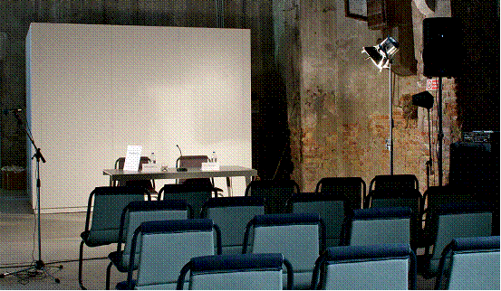 演员用过的桌子和椅子双年展期间会一直保持原位。桌上两个麦克风之间,一台敦实的监视器则负责播放表演的录像。Jackson Pollock Bar把自己的行为表演类型称作“理论装置”(theory installation)。上述安排倒为“理论装置”增添了不少实质性内涵。无论现场还是录像,已经失效的对话在这里获得了新的清晰度和戏剧性,视觉和声音讯号之间微妙的错位令过去的言语再度焕发活力。在他们演出过程中,判断所在的安全席沦为再表演的原材料。阿联酋(第一次参加威尼斯双年展)当然对欧美知识阶层就本国石油财富,独裁政体和劳工关系做出的种种判断并不陌生,以致若格哈德放心大胆地把这些知识分子的常用公式斥为“毫无新意的小把戏。”但这些小把戏又被另一名演员以与会成员的身份当成实实在在的新见解尽职尽责地表演出来,充分体现了贯穿于整个作品的误导和诡计。