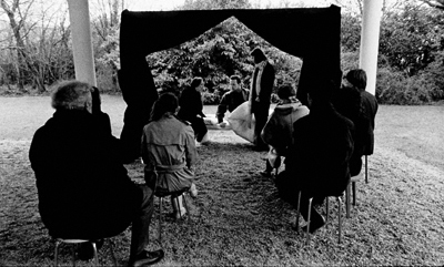 《Singspiel》将大多数使本届双年展实现高度连贯的主题集于一身。除了一系列入木三分,彼此间可以平滑过渡的个人像和群像以外,影片还赋予了别墅本身一种有机身份,使其成为在这个毫无暖意的跨世代团聚中一名无处不在的演员。最后,演员们聚集到别墅的花园里,并在一系列外观相同的凳子上落座,和装置中的帷幕差不多的幕布在他们眼前徐徐打开,幕布后是他们中的三名成员正在进行冯•勃兰登堡影片和行为作品里常见的雕塑剧表演。整个过程没有对话,只有移动的摄像机耐人寻味的警觉。但中间插播了一首旋律伤感的歌,用温柔哀婉的童音唱出,演员们则配合歌词做口型。