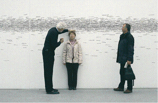 罗曼•昂达克、《衡量世界》(局部)、2007、墙上标记。现场纽约、MoMA2009。