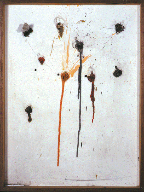 尼基•圣法尔、《打出九个洞》、1964、板上油漆、石膏和塑料、71×53cm。
