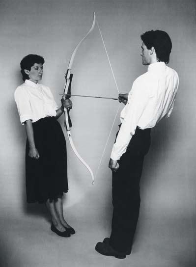更确切地说,这个由人组成的入口也是她与乌雷(Uwe Laysiepen)12年合作的开始(她于1976年离开南斯拉夫)。两人密切的个人关系(两人都是一表人才)构成了他们从1976年到1988年作品的创作背景。他们这个时期的很多作品都成了行为艺术的经典,比如《潜能》(Rest Energy,1980):他们两个一个拉弓,一个持箭面对面地站着,箭头正对着阿布拉莫维奇的心脏。
