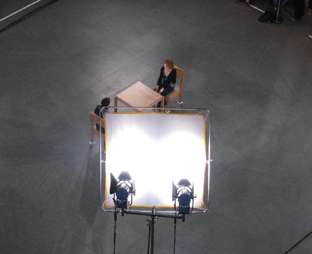她的行为作品总是在发射艺术之星,让她变成圣人或明星。但是我们的解读不应该照本宣科,阿布拉莫维奇用眼神进行交流(仅仅是坐在观者的对面)的那种可爱的、平等主义的观念到底有什么问题?在表演过程中,一些实际的问题和安全问题都被考虑在内。但是博物馆墙上的题签、新闻稿和网站都在强调一个看似技术性的细节:博物馆营业的时候她就会就位,直到最后一位参观者离开。为什么?她为什么一定要让观众看到她走进展厅坐在桌前这个过程呢?她可以完全像普通人一样行动,不过这也是整个展览极力否定之处。