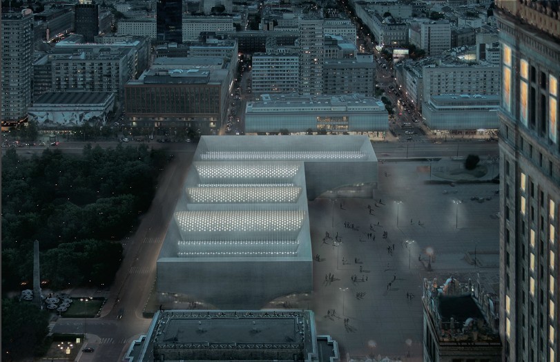 为该博物馆设计方案而举办的2007年国际建筑大赛的评选结果——评审团最终采用了苏黎世建筑家克里斯蒂安•克雷兹(Christian Kerez)的方案——引发了一场关于建筑环境与公共空间的广泛讨论。这种全国性的交流对话带有感情色彩,部分原因是这个问题已经被搁置了太久了:以前有很长一段时期,波兰城市公共建筑的目的与作用都是不容商议的,而波兰刚刚从这一时期解脱出来。这场论战的焦点在于建筑的位置,它距离文化科学宫是如此之近,还有克雷兹的设计在注重纪念碑式的建筑体量的同时,也十分简化与内敛。这项设计成为了1989年以后波兰最为极端的建筑方案,许多人都觉得表现主义的建筑(例如在弗兰克•盖里[Frank Gehry]设计的毕尔巴鄂古根海姆博物馆的线条上附带的那些东西)可能会更好一些。这个案例中的逻辑表明,建筑不仅仅是艺术与公共事件的平台,更是事件本身——它要像文化科学宫那样将政治价值与象征意义明白无误的传达出来。然而,虽然克雷兹的建筑的确什么都没传达,但它也避免了任何专断的意义。也许正是如此,它才能够表达出一种市民的开放性,一种对决定波兰社会转型的各个因素进行协商的愿望。