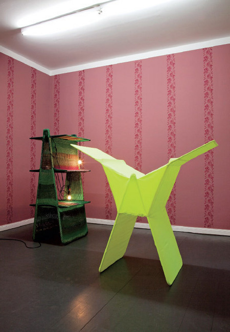我对生活中那些有张有弛的东西以及它们如何影响我们非常感兴趣,即使是那些最平常不过的家用品如如英式的茶杯套,或者晾衣架,也能引起我的兴致。例如后者,被设计成可以折叠的,用完后可以收拾到一边,在尺寸和形状上,纯粹按照功能设计,决不铺张,所以可以把它们搁在家里的某处。我经常在这样的设计限制里工作,但也探讨衣架作为一件工业产品的可变性。我发现衣架打开后,就会呈现一个巨大的平面,可能有二十米,上面可挂各种物件。这个非常宽阔的空间确是由一个被压缩的物体产生。衣架有很多可能性的构造配置,我决定将它们固定在特定的位置上,用毛线或布绑起来。这一刻,它们丧失了原有的功能性。变成了其它的东西-即是抽象之物,也是私密空间、生活方式的一面肖像。