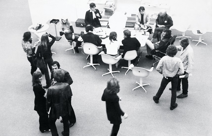 也许APG预示了社会的变化,尽管这并非它的初衷。但是,如果我们看看它所取得的艺术成绩(它让我们对艺术、艺术的呈现方式,以及我们的评价标准进行了重新思考),那么我们就会发现一个全然不同的图景。你可以引用这个组织的新的赞助模式来说事儿,因为这种赞助模式就是基于艺术家全权委托这种公开规则。但是,这个组织将“艺术家”和“意外来客”重新联系了起来,从而构成了战后的一种趋势,去除了创造过程的神秘色彩(尽管“三角单位”的提法本身具有神秘性)。另外,APG对于社会性艺术的策划方式的贡献也不容忽视:在“Inno70”展览之后,APG不再采用展览的模式,而是通过小组讨论的方式展现其项目。这也构成了作为“话语平台”的展览,以及作为呈现过程性(而非物品性)参与艺术的研讨会的基础。