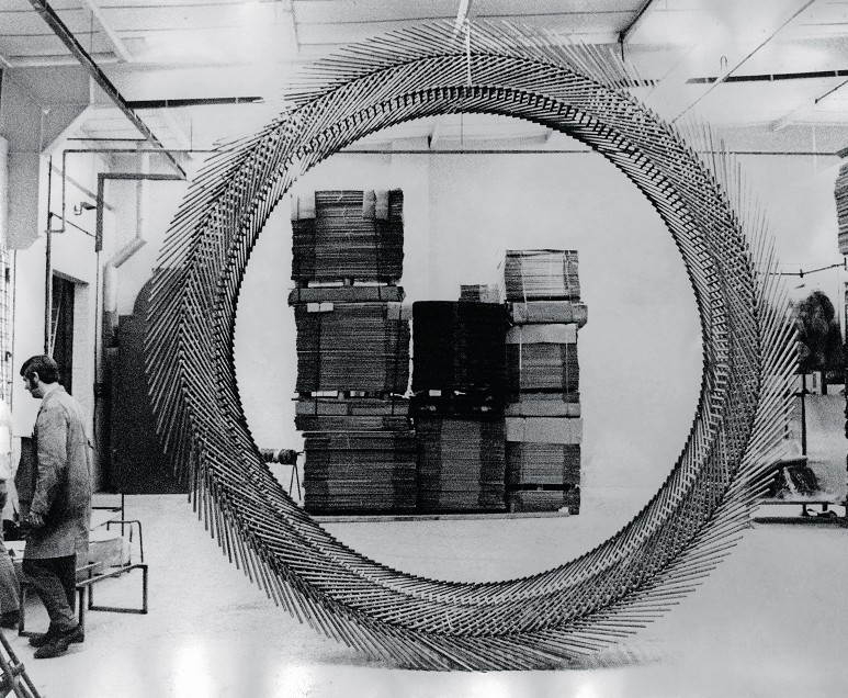 APG成立的时候,Latham就已经是一位知名艺术家了。现在,他最为人所知的就是那些用书做成的作品:将书摆成一座座高楼、烧掉,甚至将书扔进装满小鱼的鱼缸。最著名的是他在1966年进行的行为表演艺术《静止与咀嚼/艺术与文化》(Still and Chew/Art and Culture),其中,他和自己的学生咀嚼一本从圣马丁艺术学院图书馆借来的格林伯格的《艺术与文化》,然后将这些咀嚼过的碎屑装进一个瓶子里,并且贴上了“格林伯格的本质”的标签——而他本人也因为这次破坏行为丢了饭碗。在同一年,他再次公开冒犯了现代主义——他们创立了APG。 这个想法的雏形产生于Steveni1965年一天晚上的思考,当时她正在为激浪派艺术家Robert Filliou和Daniel Spoerri在西伦敦郊外的工业综合艺术工程Slough Trading Estate搜集碎石。她觉得,如果艺术家直接在这些工厂中工作,而不是采用工厂外面那些废弃的石头,那样他们的作品将发挥更大的社会性作用。而Latham也意识到,Steveni的这个想法和自己的时间性“事件结构”不谋而合。第二年,Steveni组成了理事会——艺术家安置团体就此诞生。