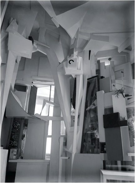 施维特斯将自己的集合艺术统称为“默茨”(Merz),这个词是他去掉德语单词Kommerz(“商业”之意)的第一个音节而自创的,它本身的拼写只是一个银行名称的一部分,令人想到Commerz-und Privat-Bank(德国商业银行)。施维特斯自1919年开始创作“默茨”,那年魏玛共和国刚刚成立,到处是动乱与革命——而对于施维特斯来说,那却是在艺术创新方面充满了无数可能性与必要性的一年,他采用了一种变形的交易语言,这预示着他新的艺术计划。以“默茨”为名,他以印刷、设计、表演、装置、诗歌、散文(文学散文与批评散文)等多种方式进行创作——更不必说拼贴、集合、绘画和雕塑了。他在1923年公开宣告他的“默茨”绘画的产生,这种绘画的功能就是研究一种“集体世界的形式,一种宏大风格”,我们从在曼尼尔举办的这次展览就可以窥见这一主张。本次展览展出了施维特斯的一百余件作品,包括拼贴、集合、浮雕和雕塑,数量之大,种类之多,令人叹为观止。此外,本次展览还包括Peter Bissegger首次在美国对《梅兹堡》(Merzbau)的部分复原,《梅兹堡》是一个由木材、石膏和精心挑选的碎石块构成的一个房间,施维特斯耗费了十余年时间才创作完成,但它在1943年毁于联盟国军的轰炸。如果施维特斯是支持Gesamtkunstwerk或者说总体艺术的关键人物,那么所有这些努力则共同展示了他力图完成这项计划时所使用的方法的绝对精确性:在他的浮雕与集合作品中凸起的每一块涂有颜色的木头,在他的拼贴作品中的每一层纸和布,都变成了他每件作品中所创造的那个私密世界中的最基本元素,同时也是它们所共同构造的那种总体化面貌的基本元素。对于施维特斯来说,Gesamtkunstwerk永远都是一群重新组合在一起的片段,是从一个整体中分离出来的不同部分。