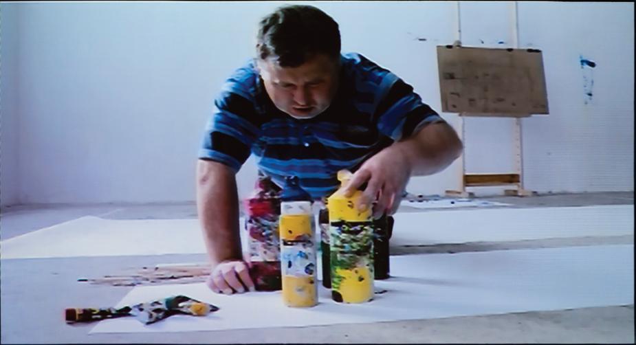 展览上还有一些作品来自久已尘封的记忆,例如1960年代德国波普艺术家Peter Roehr的那些神奇电影,以及Jikken Kobo试验工作室为一家日本自行车公司设计的带有幻觉的广告,这个工作室汇集了一些日本的作家、艺术家、音乐人和导演,共同创作唯美作品。他们在1955年创作的《银轮》(Silver Wheel)是一部带有广告性质的梦幻影片,让人想起了《欢乐满人间》(Mary Poppins)。但这件作品却是在战后日本的前卫语境下创作的。另外,有两件波兰艺术家的作品给人留下了深刻印象,它们都直接触及到了盲目的问题,并且以一种极端,甚至残酷的方式(像Jakub Julian Ziółkowski的作品那样)进行处理。Ziółkowski漫无章法的图绘是根据乔治•巴塔耶(Georges Bataille)的《眼镜的故事》(Story of the Eye)创作的,这些绘画表现了这部冒天下之大不韪的著作当中形形色色的暴力。然而,我最喜欢的作品是Artur Zmijewski的影像肖像,在这部作品中,他让那些盲人用色彩来描绘世界,尽管他们没见过这些色彩,但他们却赋予了这些色彩以最强烈的情感。盲人的言辞和Fischli与Weiss在桌面上平铺的作品判然有别,也正是因为这件作品我才不虚韩国之行:这种视觉无涉实际的观看,是一种独辟蹊径的探索。