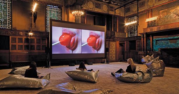 赤裸裸的白色立方体,与另一种背景相称,展览试图勾起人们失眠时那种游走而迷幻的记忆,尤其加上军械库的古典雕刻品和黑嘘嘘的氛围,更是如此。观众们靠在枕头上看着《鬼魅》,画面上反射出来的则是躺在那里的催眠师的病人们。