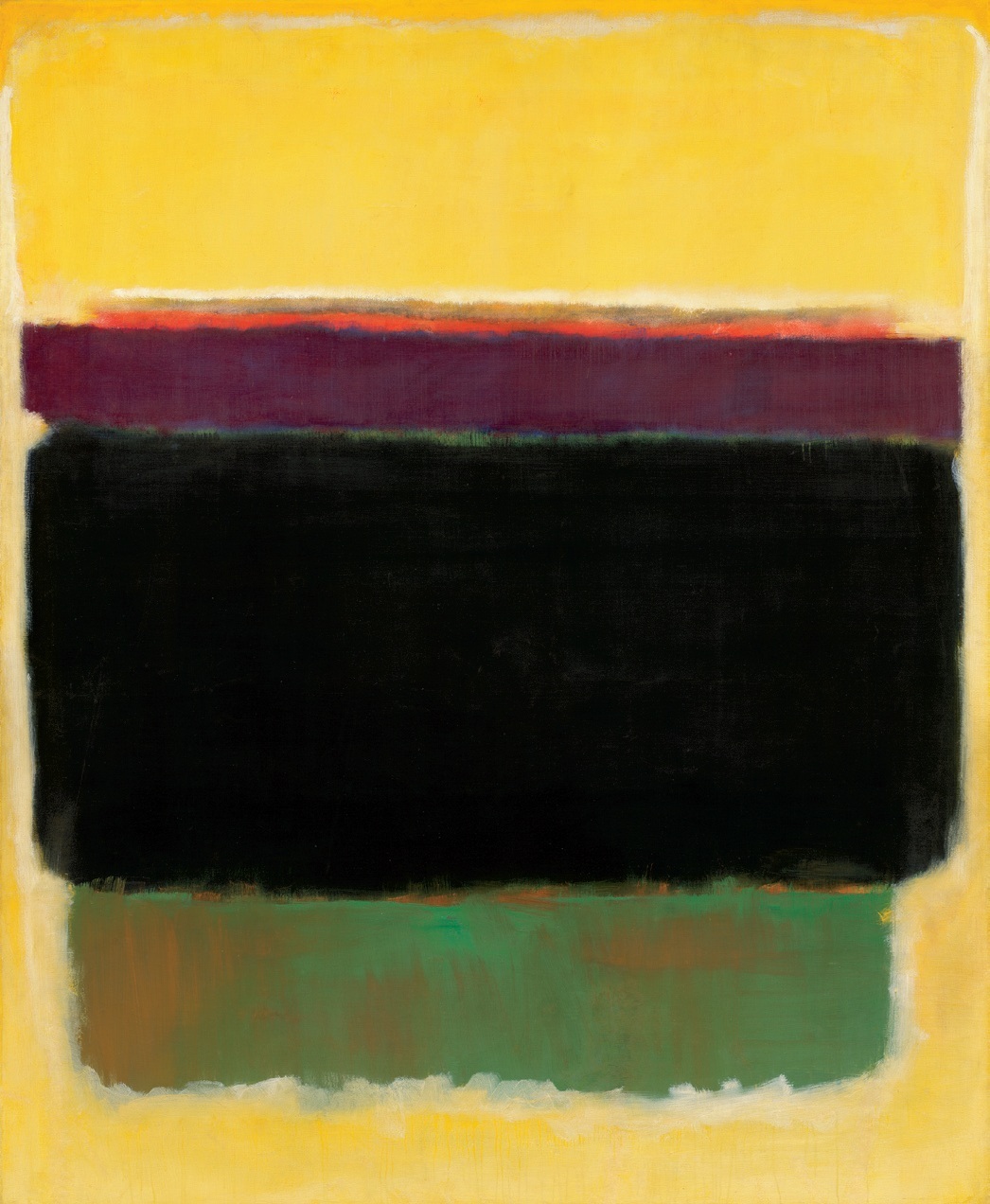 7. 无声的言语。罗思科差不多在1948年停止写作——在这个奇迹之年里,他、波洛克、纽曼都找到了各自标志性的表达方式。我怀疑罗思科停止写作是因为他开始把绘画当作一种语言。同样的道理也适用于他的很多同伴。但果真如此就太遗憾了,因为绘画并非语言,抽象画就更不是了,那些斑斑点点的含义都没有字典都查。阿道夫•葛特莱布(Adolph Gottlieb)意识到这一点,于是在创作中保持了相当高程度的可读性,无论他悲剧是来自古希腊(《俄狄浦斯之眼》,1941)还是原子核爆(《爆炸》,1957-74)。其他人则把所有宝都压在了晦涩的象形文字和暧昧不明的姿态上。
