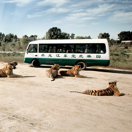 2008年,赵仁辉在坎伯韦尔上学时创建了ICZ——尽管该机构网站(criticalzoologists.org)将ICZ的起源追溯到1996年日本“长崎动物中心”和中国“重要动物学馆”(Zhong Yao Dong Wu Xue Guan)合并——之后四年,他不再用自己的名字做作品,而把所有活动都放到“动物学家批评学会”名下进行,该组织在各国各地的“工作人员”大多是艺术家的朋友,其中包括不少用现成或人为设计图像虚构的人物。借助赵仁辉半虚构的照片,ICZ的活动从一开始就游移于类似Pulau Pejantan岛考察系列的“纪实”项目与某种斯威夫特式的“研究”项目之间。提议设立老虎养殖场用于医药开发,以此减少偷猎(“药用虎”,2007);开发一种能让观察者完全隐匿于周围环境的“超颖材料”迷彩服(“掩护”,2008-10);通过某种方式让有机体进入休眠,从而延长濒危物种的寿命(“Acusis”,2008)—— 这些包含丰富图像和数据资料的观念双关语既是为了进入,也是为了消解某些我们熟悉的环保主义、动物养殖以及动物学研究的运作结构。