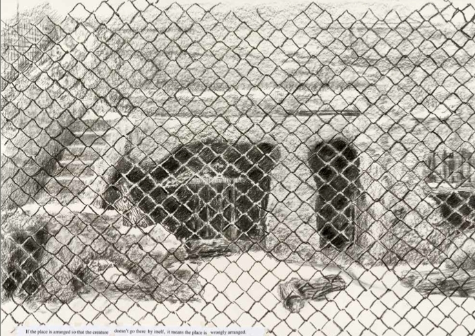 在所有这些绘图项目中,视觉上最令人感到震撼的也许是蒂芬妮·钟的作品,仔细观察之下,她的那些甜腻用色和华丽装饰实际上是服务于制图功能的,无论是叙利亚难民穿越特定的地理和政治边界的迁移路线,民众需求和政府及军队控制之间无休止的毁灭性冲突的汇集,还是把在叙利亚内战中被杀害的平民和孩子按照各区域的统计数字加以视觉化(“叙利亚项目”,Syria Project,2014–)。在绘图的历史类型学中,钟的作品应该介于康斯坦特(Constant)在《新巴比伦》(New Babylon, 1956–74)中借用乌托邦想象手段来描绘当代都市化逼近的噩梦的反乌托邦手法,以及已经去世的马克·隆巴尔迪(Mark Lombardi)精准的绘图项目(可惜未出现在此次展览中)之间。隆巴尔迪在他的研究工作中收集了造成族群(populations)毁灭的原因,追踪和梳理了公司资本和政治权力之间的相互蔓延。而现在钟则是绘制了受害者族群和难民,以及经济移民的被迫移动,用制图学的知识和图表服务于当下最富生产性的绘图实践尝试。