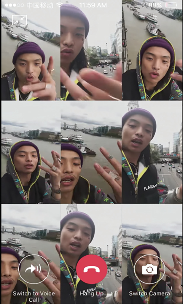 由Miyashiro旗下专注于亚洲说唱歌手的厂牌88rising发布的这部音乐录影带将微信——这一统一了中国(一个Facebook、Twitter、Instagram、和YouTube被禁的国家)社交网络集体经验的软件——用户界面的各种元素聚合到一起。成都音乐组合海尔兄弟(Higher Brothers)创作的trap音乐的背景影像包括了我们所熟悉的手机通知、表情,以及视频聊天和图片传输中的视觉图像。
