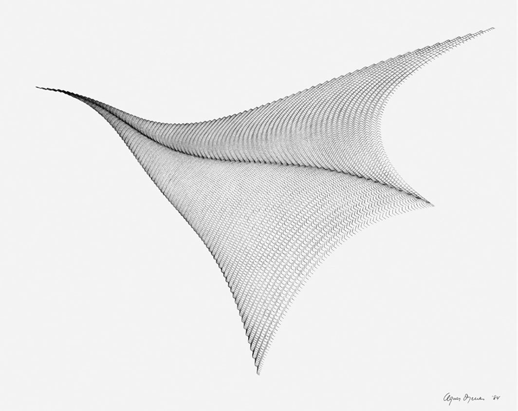 通常她的项目都会从一个基本的方程式或问题开始,随后发展为图表、绘画或装置,仿佛提示某些神秘的转换过程存在的隐晦代码。丹尼斯是最早使用计算机进行创作的艺术家之一,她在上世纪60年代后期开始用基本的几何单位(三角形)构建数字模型。她之所以对事物的起源感兴趣,似乎是因为她相信,无论被说得多么乌托邦,技术进步始终面临着成为国家、精英和镇压工具的风险。她对复杂(或可能被滥用的)系统追根究底,以便掌握它们的破解之法。她法医般的研究不仅包括信息系统,也包括社会系统。她了解这两者密不可分。