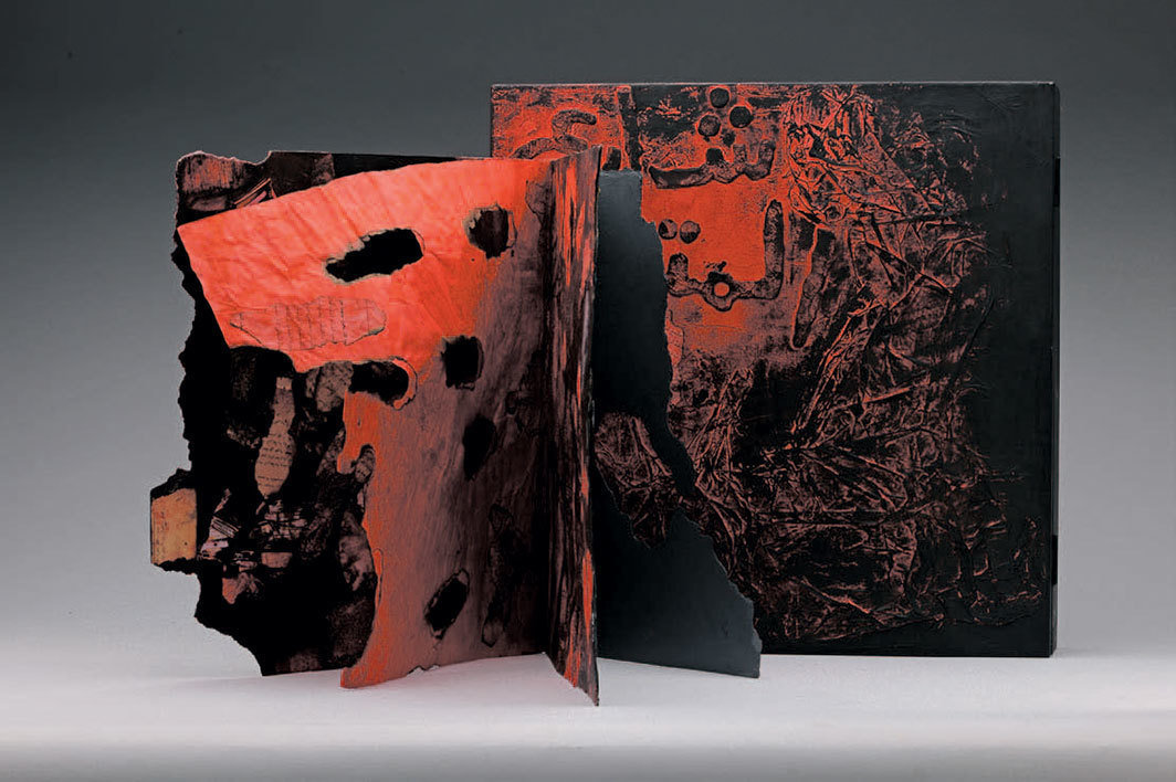 但此类干预还是无法与西方媒体工业以及美国的军事科技抗衡,二者阻碍了任何外界对生活在伊拉克的人以及在海湾战争期间逃离到周边国家的人所面临的现实的深入理解。伊拉克曾是中东的文化中心,有着一段成熟的现代主义艺术运动以及文化机构,这些都遭受了海湾战争以及国际制裁的巨大打击。努哈·拉迪(Nuha al-Radi)用废弃金属和木材制作的雕塑“禁运系列”(Embargo Series,1990–2003)以及卡里姆·瑞桑(Kareem Risan)、迪娅·阿扎维(Dia al-Azzawi)和纳扎·叶海亚(Nazar Yahya)的艺术家书《笔记》(dafatir)都是展览的亮点。《笔记》里那些布满记号、烧焦、内容驳杂的纸页源自一种记录的必要,充满了悲伤、失落以及对家的渴望,和伊拉克艺术家的私人日记十分相似,整理了海湾战争期间的当代暴力,并且援引了正在被摧毁的传统伊拉克及伊斯兰艺术。