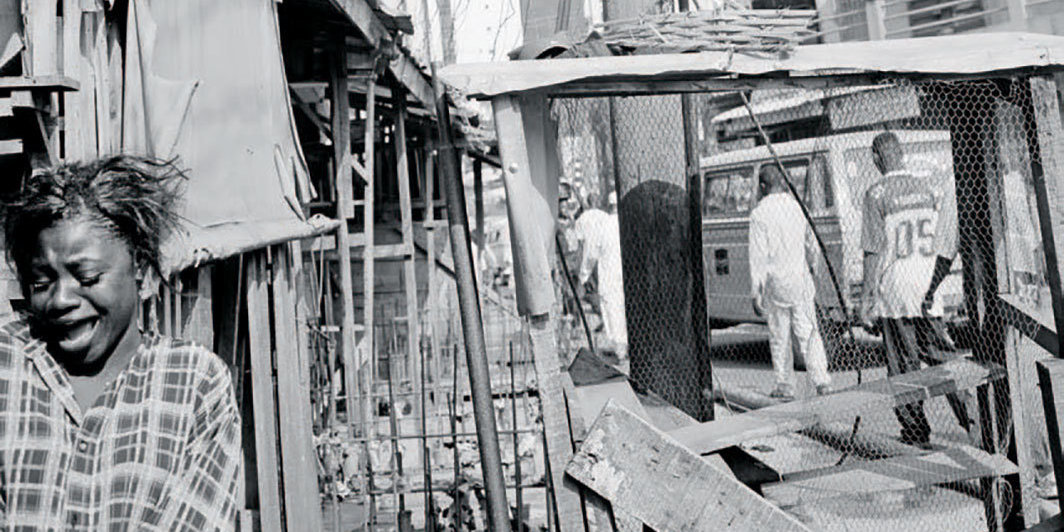 此次展览共展出了五个系列的作品,其中大部分都是在过去十年间积累下来的,而且这个过程还在继续。在格罗皮乌斯博物馆(Gropius-Bau)的展厅里,这些黑白照片(无论是单独的还是双联的或者是网格状陈列的)都没有展签,将观看者的目光坚决地从时间、地点这些具体信息转移开,而是让人留心到视角、情绪和主题之间错综复杂的关联——那些让这些照片系列得以成型的主观或者客观的的联系。这其中创作时间跨度最大同时也可能是最全面的一组是“摄影、烟草、糖、安全套和其他形态”(Photography, Tobacco, Sweets, Condoms and Other Configurations,1970s–)。这组照片里最为生动的是街头风景中那些无处不在且意欲传达信息(而且常常是性暗示)的图像带来的紧张感——城市被广告征服了,那些图像中的身体和面孔几乎已经湮没了真实存在的城市居民。与之形成对照的是“大海永不枯竭”(Sea Never Dry,1980s–)系列,那些图像来自非洲和欧洲的海滩,此类环境尚未受到那些信息轰炸式图像的冲击。很显然,无论是个体还是群体的活动都变得十分醒目,这在其他系列中是不存在的——在那些图像里,城市本身而非其居民扮演了主角。而这些以海水、沙滩以及简陋的房屋为背景的照片——用策展人娜塔莎·金瓦拉(Natasha Ginwala)的话来说——唤起了“城市精神得以重获青春的交界处或者临时居所”。