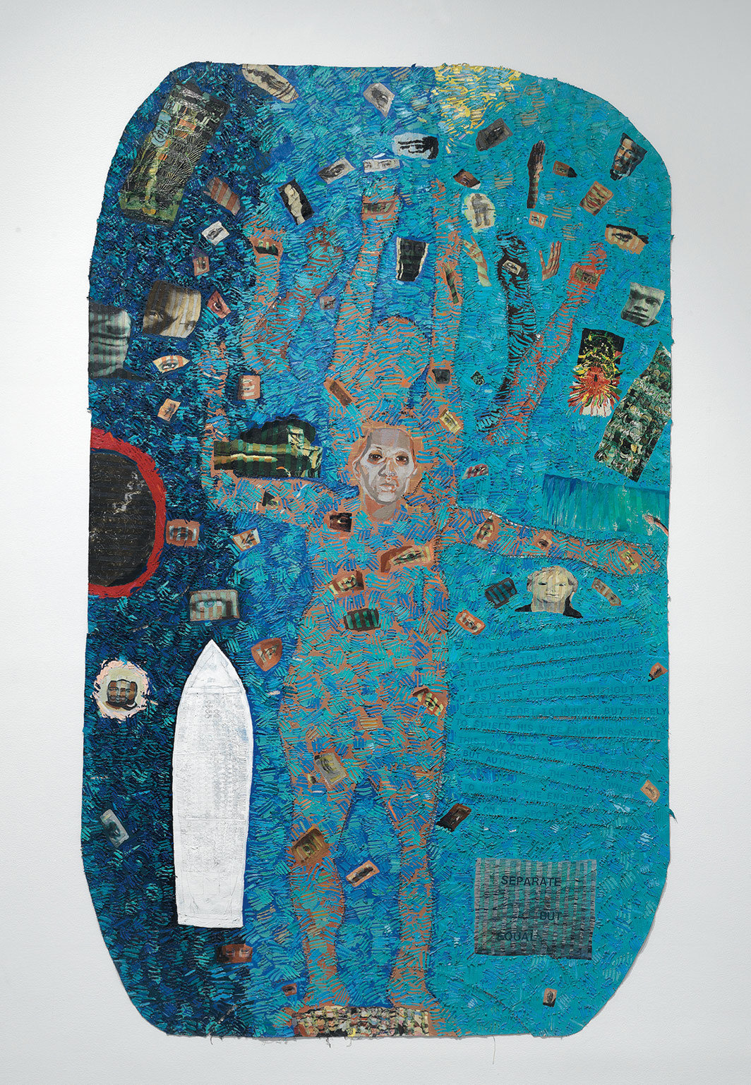 呈现一个既能抓住特朗普时代的特殊性又可以反映长期以来美国种族主义图景和知识的展览并非易事。很大程度上必须依赖画册文章来处理更广阔的历史议题。不过也有一些例外——比如霍华德娜·平德尔(Howardena Pindell)针对跨大西洋奴隶贩运历史的超现实主义拼贴作品——这些作品在一些较小的历史尺度上展开。没有一件作品直接涉及展览的最初源头,即南北战争,但有不少援引了民权运动及其余波。梅尔·爱德华兹(Mel Edwards)悬挂在墙上的雕塑“私刑碎片”(Lynch Fragments,1963–)系列即便过去了六十年也还是保留了最初那种令人不安的当代性。丹尼尔·拉鲁·约翰逊(Daniel LaRue Johnson)的《现在就要自由,1号》(Freedom Now, Number 1,1963–64)和杰克·惠滕(Jack Whitten)的《伯明翰》(Birmingham,1964)亦是如此。布满了新闻剪报、徽章和其他运动残余物的现代主义画作将展览根植在上世纪中期的政治状态以及战后美国前卫艺术的理想中。而“黑命攸关”运动的兴起不仅仅带来了大量的无政府主义宣言,更是对保存、扩展和重塑1960年代遗产的一种新的集体渴望。展览也没有回避那个年代未解决的冲突,将激进派作品与自由派作品/艺术家并置,好像他们共享同一种社会理想一般。画册文章中对于“进步神话”的警告有其道理,但其中为数不少的几位撰稿人(尤其是塔-奈西希·科特斯[Ta-Nehisi Coates]最早发表于2017年的一篇文章)费尽心思地否定了所有的变化,这种立场在当下的情境中怕是有些站不住脚。吉奥尼认为该展体现了恩维佐工作中“几乎好战”的一面。不过这种所谓的好战性格显然被传说中反对工会的美术馆馆长向福特基金会主席达伦·沃克(Darren Walker)致以的“特别感谢”抵消了。沃克对捐赠人阶层的热切维护经常裹着关于公民权利以及当代社会正义运动的修辞,听上去言之凿凿。两年前,安吉拉·戴维斯(Angela Davis)在福特基金会位于曼哈顿的办公地点外组织了一场抗议活动,反对沃克对以四间分散在城区间的监狱取代里克斯岛监狱的提案的支持——其名义上的说法是终止大规模囚禁。(“我们不能让完美成为进步的敌人”,他写道,完美地表露了监狱废除主义者和摇摆不定的改良主义者之间的紧张关系。)