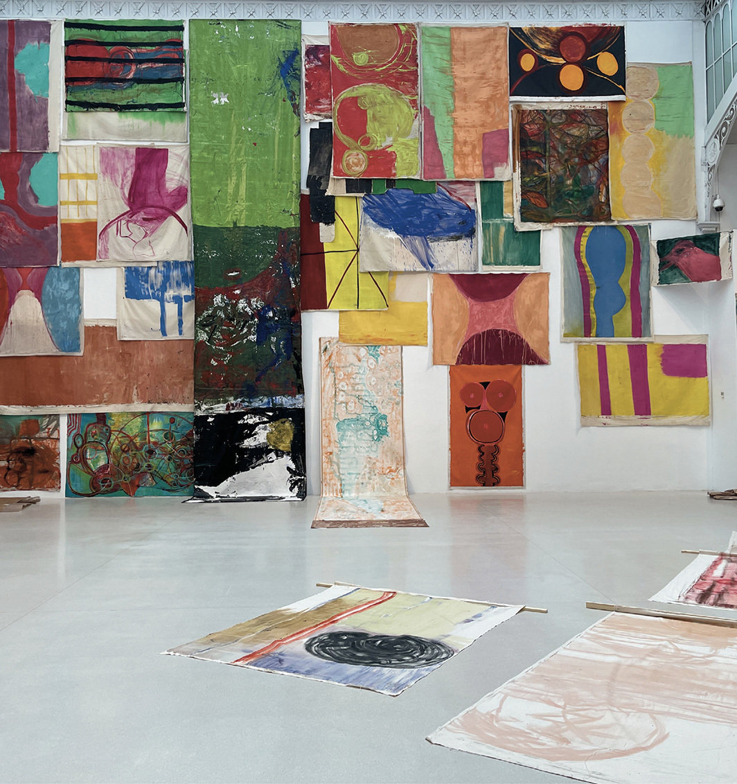 沉浸这个概念通常与装置或者电子媒介艺术相关联,而非绘画。但苏特的工作方法与生产挂在白盒子空间、打好光的平的表面无关。她的作品在我们所熟悉的排外的机构运作模式制造出的“纯净”中显得格格不入;催生了它们的充满活力的力量不断地改变着它们被创造和展示的空间。它们属于外部世界,而当它们出现在类似索菲亚美术馆这样的空间时,你马上就会意识到这是一种临时的安排,它们终将回到让它们得以出现的自然循环之中。苏特的作品是生态/环保(ecological)的吗?是的,但它们不是关于生态系统(ecology)。它们“就是”生态系统。