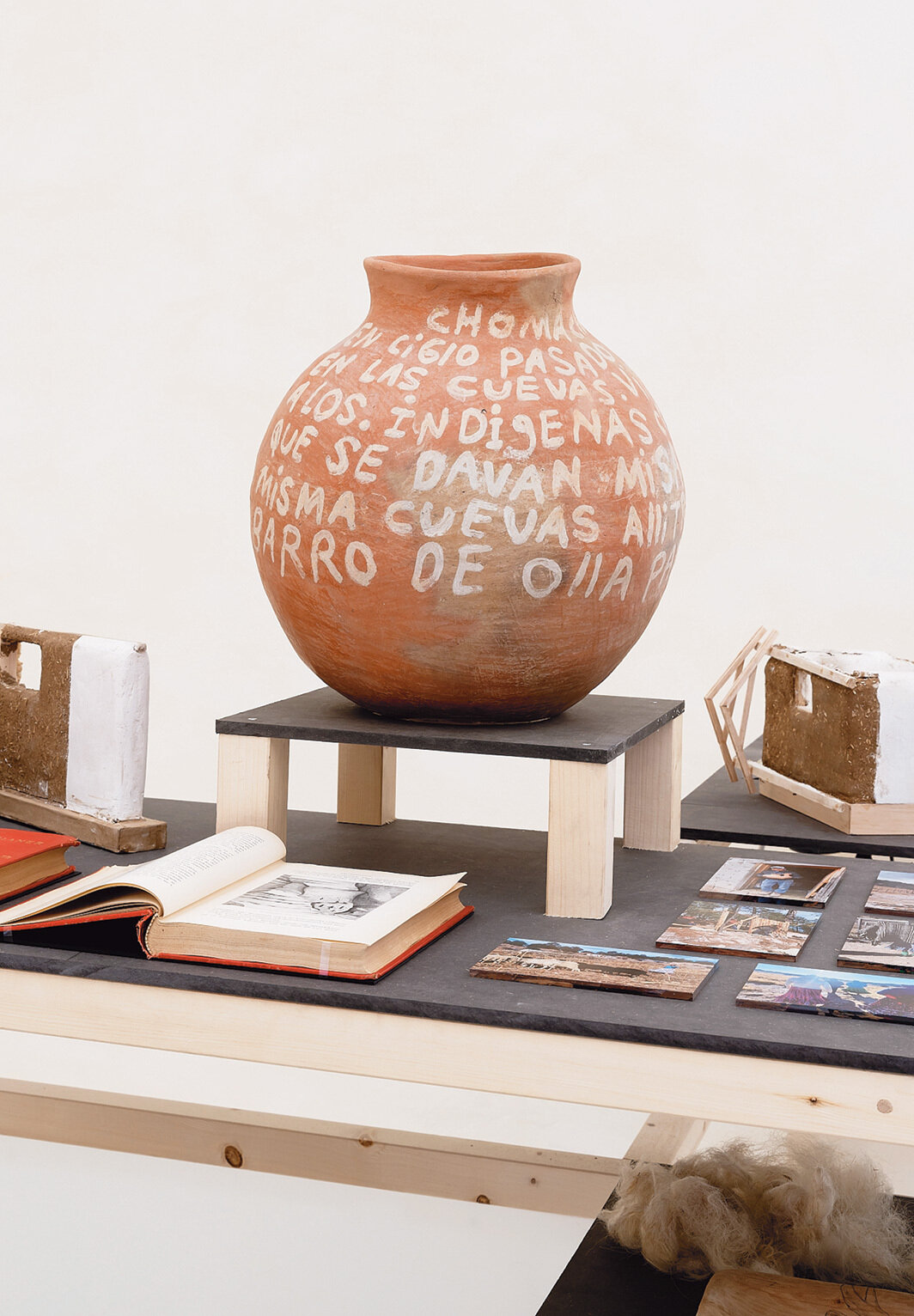 如果说恩维佐一丝不苟地质疑了策展权力关系,那么ruangrupa则是对策展能在多大程度上被分散和去中心化进行测试。在这次的文献展上,每个展览附有的文字材料有着显著的不一致。在WH22,由加沙团体Eltiqa和来自拉马拉的“米仓”成员“资金问题”(the Question of Funding)策划的现居加沙的艺术家绘画展经过了深思熟虑,提供了大量墙面标签、印刷品,甚至还有一条有详细注解的自1948年巴勒斯坦大逃亡(Palestinian Nakba)以来发生的各大历史事件时间线,其中交错着个人轶事,强调艺术家们所处的政治经济环境。在Ottoneum自然历史博物馆,在马德里、马洛卡和西班牙北部山区运作的团体INLAND展出了很多与西班牙高原乡村生活相关的物件,而展品旁所附的小卡片上印的文字段落读起来更像随手写下的研究笔记。