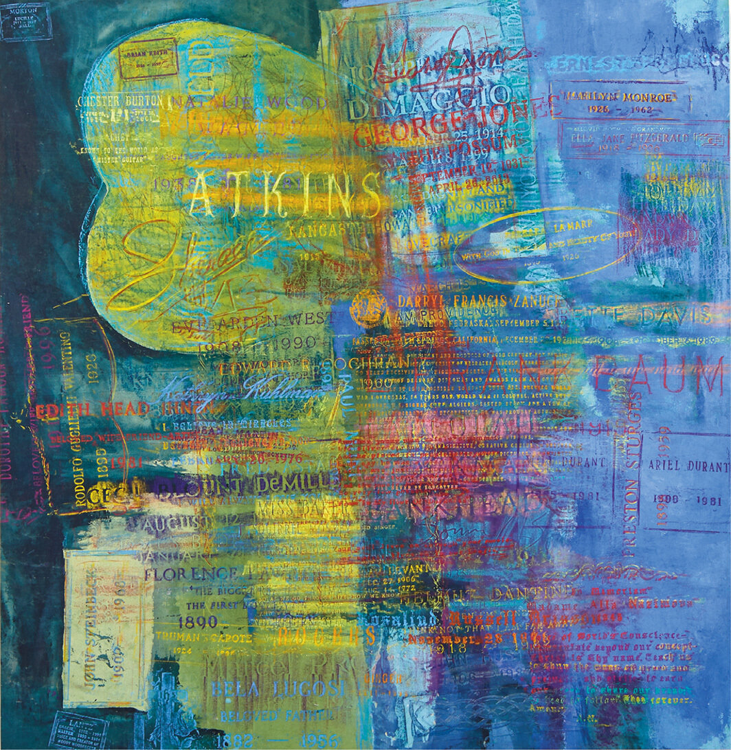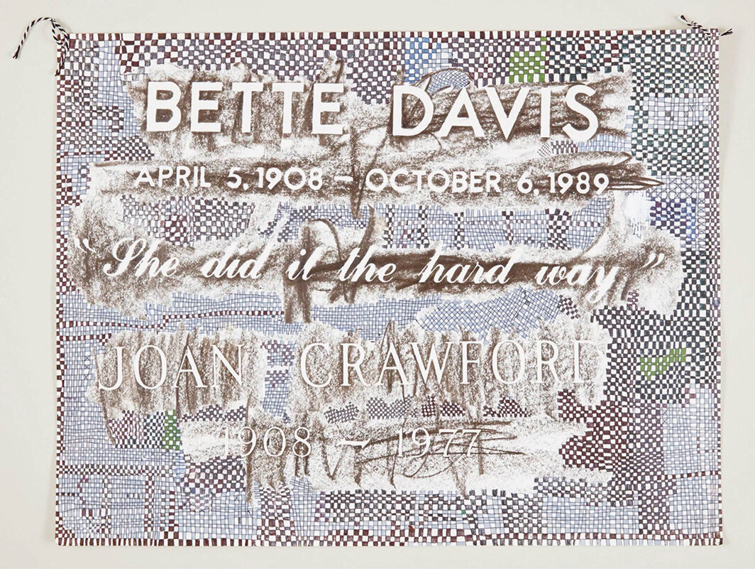 考佛特就像某种活在混沌末世的高贵拾荒人,一丝不苟地收集着所有从地球曾经高耸入云的红杉树上掉落的枯叶。就世代而言,他是加里·李·博厄斯(Gary Lee Boas)的同侪,后者作为头号追星族摄影师,1970和80年代挤在后台入口和红毯附近等了无数个小时,就为拍到一张伊丽莎白·泰勒(Elizabeth Taylor),或者琼·本内特(Joan Bennett),或者芭芭拉·斯坦威克(Barbara Stanwyck)。但考佛特不为任何人在任何地方蹲守;昔日最耀眼的大明星都在等着他的到访(除此以外他们还能干嘛呢?),等他带着他的棉纱布和油粉彩蜡笔来收集他们的“签名”,同时接受他们无生命的陪伴。我想到那些中国古代的碑帖和金石拓片,文字或纹样拓印在脆弱柔软的宣纸上,寿命远远超过了它们的原始载体。或许有一天,当地球化为一片焦土,某个孤独的灵魂会在倾塌的美术馆里发现一张考佛特的画,上面印着“贝蒂·戴维斯”(BETTE DAVIS)几个字。发现画的人并不知道戴维斯是谁,也许带着些许困惑,他大声念出了她的名字,短短几秒钟的时间让女演员又活过来一次。不知为什么,这样想让我感到某种安慰。