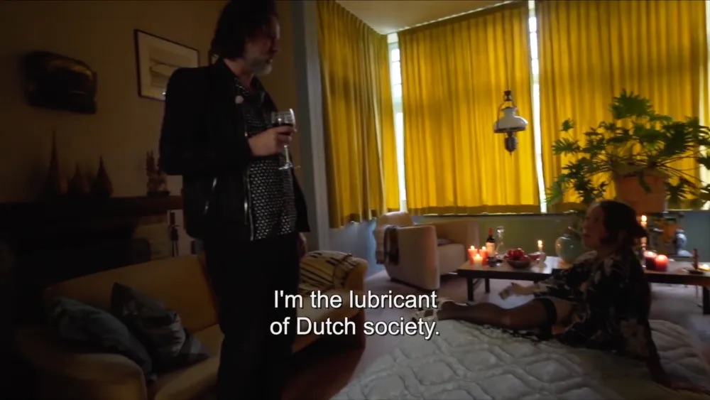 随着他们的“恶名”大噪,KIRAC开始寻求私人赞助,以规避机构的管控,并支持他们转向愈发诗意化、非传统的影像制作方式。在以2020年的《山羊》(The Goat)为终章的一系列影片中,KIRAC成功改造了脾气古怪但个性迷人的百万富翁菲利普·范登赫克(Philip van den Hurk),让他放下了自己的暴发户品味,成为他们的赞助人。在一次埃及之行中,萨多玛和鲁滕贝克直言不讳地告诉这位新赞助人:“金钱是艺术的一部分。你知道我们是艺术家。如果你加入我们,艺术就有了,这意味着你得付钱。”摆脱了机构和国家资助所要求的“体面”话语枷锁,KIRAC的批判变得更加肆无忌惮。他们的影片开始迅速从影像散文转向人物研究(他们早在2017年就曾在一部有关艺术经销商斯蒂芬·辛乔维茨[Stefan Simchowitz]的影片中尝试了这一手法,此人被指控剥削崭露头角的年轻艺术家),通过扭曲性的人物刻画,暴露出鲁滕贝克和辛哈所指认的现代社会精神失常之症状。