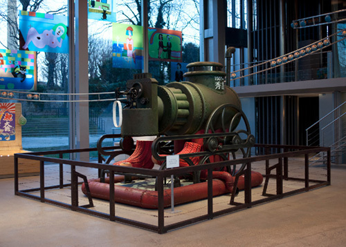 日本著名试验电影导言北野武曾拍摄过《奏鸣曲》(Sonatine,1993)和《花火》(Fireworks, 1997)等影片,另外在日本,他还是有名的演员、作家、电视节目主持人。他强调,他的首次回顾展是献给儿童的。在开幕欢庆上到处都能感受到他的幽默,他做了一个诺大的蒸汽机,但这个机器唯一的作用就是推动一架缝纫机,还有一个玻璃橱窗,展示了17件机器与动物的结合设计,比如为日本军队设计的穿着滑雪板的萤火虫(firefly