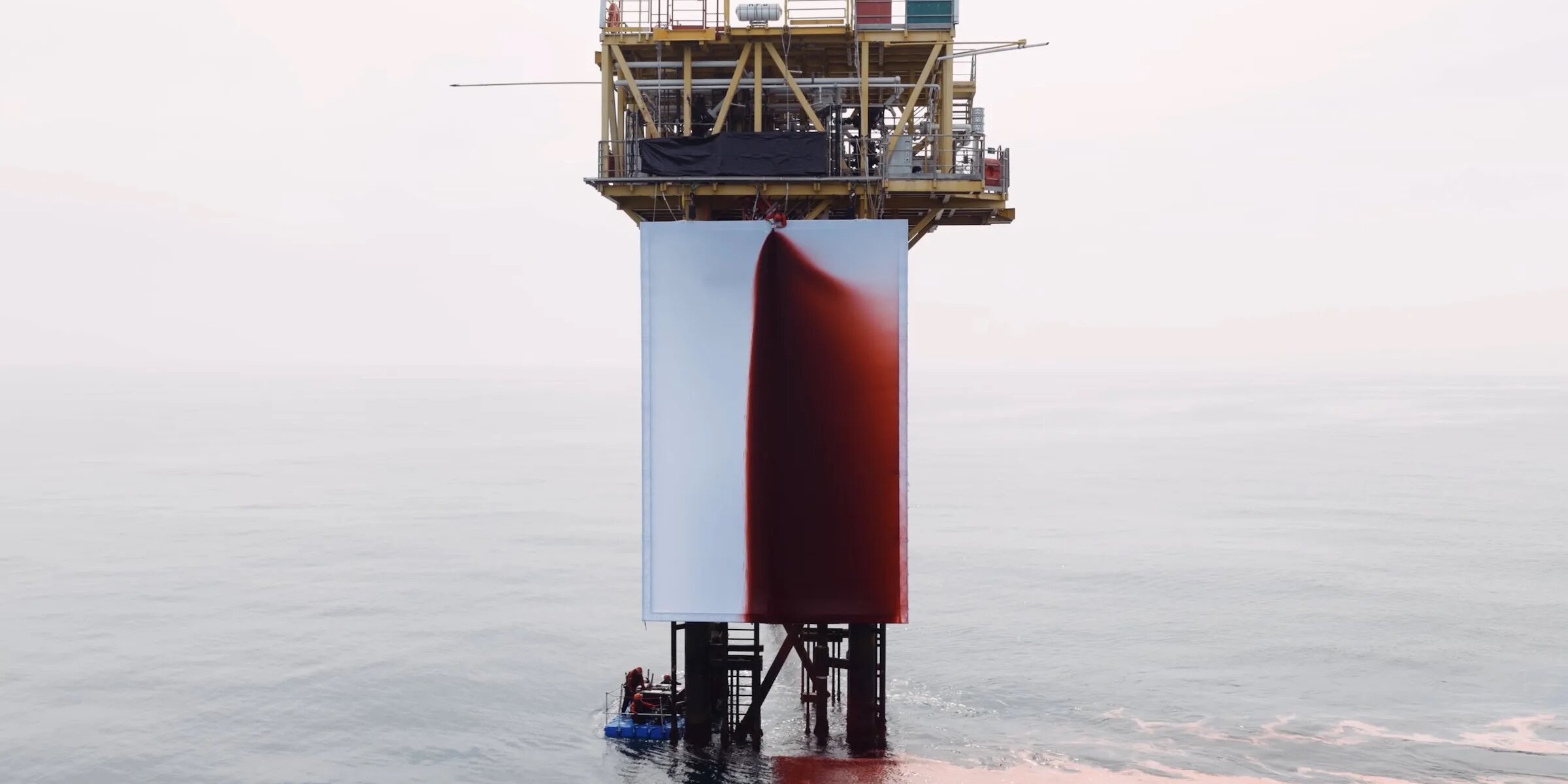 8月13日,安尼施·卡普尔(Anish Kapoor)的一件大型抗议艺术作品被气候抗议者吊装在北海一座壳牌天然气平台上。这幅题为《屠杀》(BUTCHERED)的作品由一块12米乘8米的画布组成,隶属于绿色和平的抗议者将其安装在距离诺福克海岸45海里的一座天然气开采平台侧面。固定画布后,抗议者接入了一根高压水管,向画布喷射了1000升血红色液体,象征石油和天然气公司对世界造成的创伤。此次行动正值欧洲创下高温新纪录之际,西班牙爆发森林野火,英国发布高温健康警告。