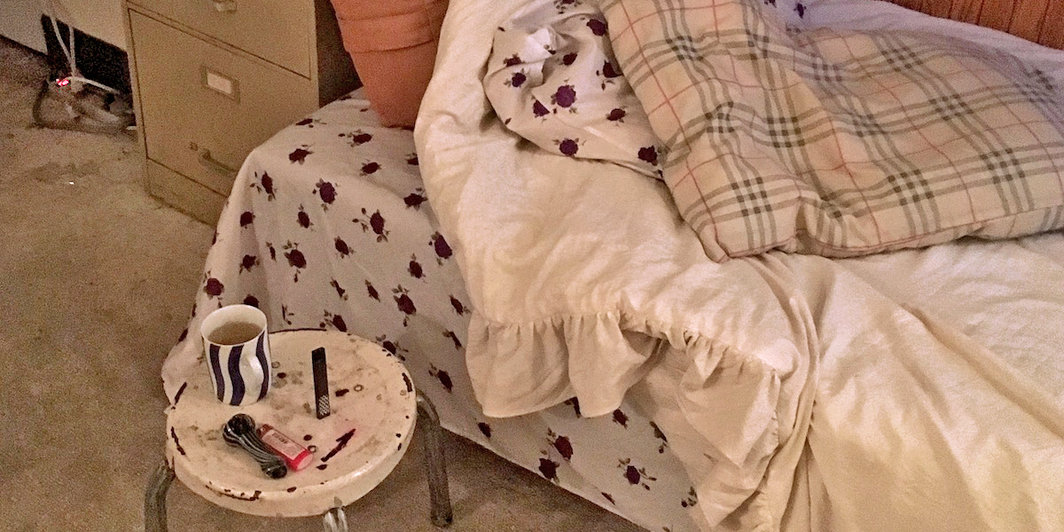 过去几年间,我一直非法居住在一家前殡仪馆的漏水车库里,当室内装潢还风行使用木板墙的那阵子,殡仪馆被改造成了一座办公室——现在我亲切地称它为“茅屋”(the hovel)。手停口停,没有存款,拖着一屁股学生贷款的债务——这样的我不可能在纽约市内租到任何正经的房子。当我在Craigslist上看到这座房子的时候,一位藏家帮了我一个大忙——毕竟,“茅屋”是一个超级划算、绝无仅有、纽约市不可能再找到第二座的工作空间——他帮我签下了租约。最后,出于种种原因,我完全搬了进来。这里有一个淋浴间,两个洗碗槽;想办法藏进去一张双人床和电热炉简直易如反掌。衣服只能放在文件柜里,不过我再也不用担心要付两份房租了。