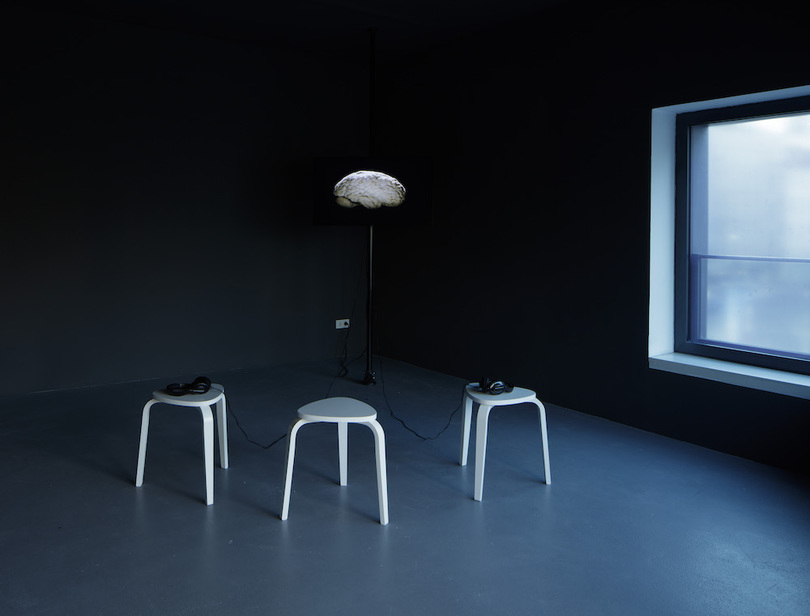 “无器官大脑”展览里的另一些作品,比如戈登的临床心理学装置《30秒文本》,(30 seconds text, 1996)(原型取自1905年的一份医学报告,报告中所记录的人物在被斩首之后双眼仍然盯着观察者30秒钟),杰里米·肖的系列摄影“看不见的潜力(塞洛西宾乌托邦,a.2)”(Unseen Potential [Psilocybe Utopia,a.2] ,2021),以及包豪斯艺术家阿尔弗雷德·艾哈特(Alfred Ehrhardt)的显微摄影《脑桥纤维束(人)》(Faserzüge der Varolsbrücke [Mensch],1939),共同呈现了各种不同认知图像的科学史,同时证明了意识的变幻莫测。这样一来,这些作品似乎为奈迪奇所谓的“无器官大脑”提供了注解,认知在这里已经脱离了任何组织程序或格式塔。就像德勒兹著名的“无器官身体”一样,奈迪奇的大脑是一个被解放了的装置——高密度、可塑的和游牧式的。它首先是一个关于抵抗的比喻,通过对神经回路的不断重塑和审美刺激,超越了对心理的抓取和控制的体制,孵化出激进的主体性(“后殖民、后人类和后资本主义”)。