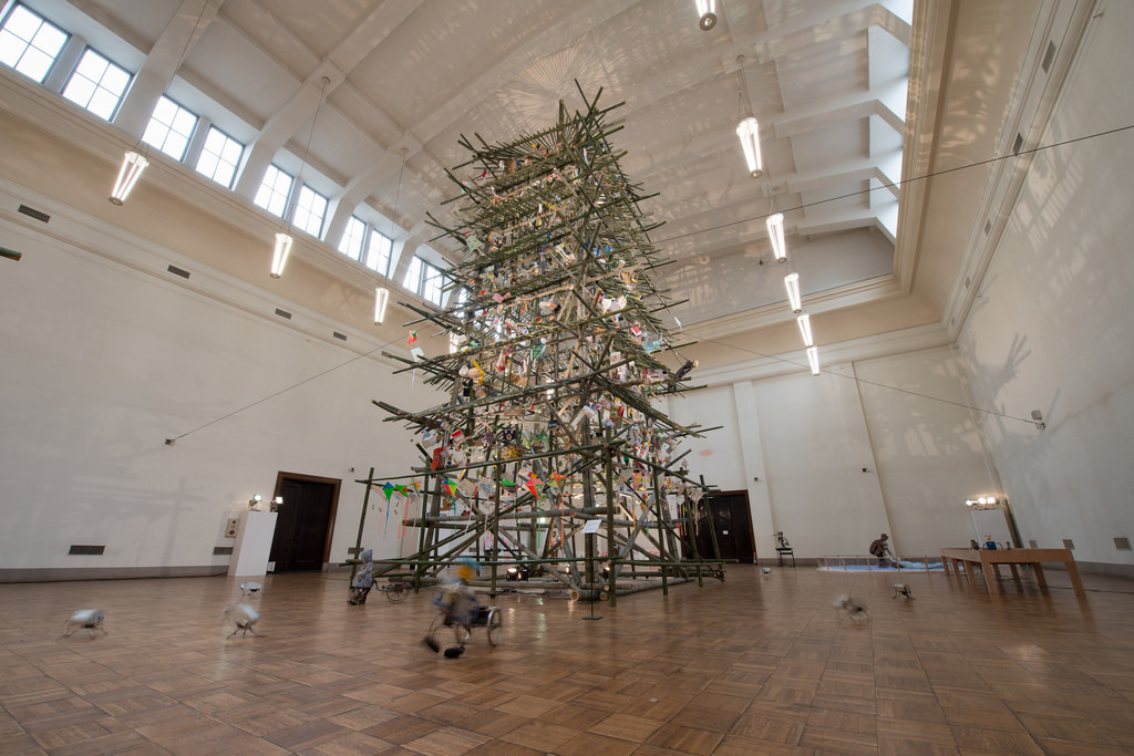 2015年,日本京都举办了“京都国际现代艺术祭”,由资深策展人何本信治(Shinji Kohmoto)所策划。这档于京都市内的美术馆、社区空间和公共场域所举办的展览,大牌云集,乍看不过是另一个城市行销的类“国际双/三年展”,然若仔细观赏并了解策展人的铺陈与选件,会发觉其作品彼此关联性所勾划的语境,和日本过去展览所青睐的感官取向十分不同,反而有着难得的高度,以“地域历史”和“叙事文本”两个核心构成一定程度的思辨性。此展览在日本虽未尽得它该有的好评,然却不负京都这座具有左翼思想的传统古都所具备的气质和深度。