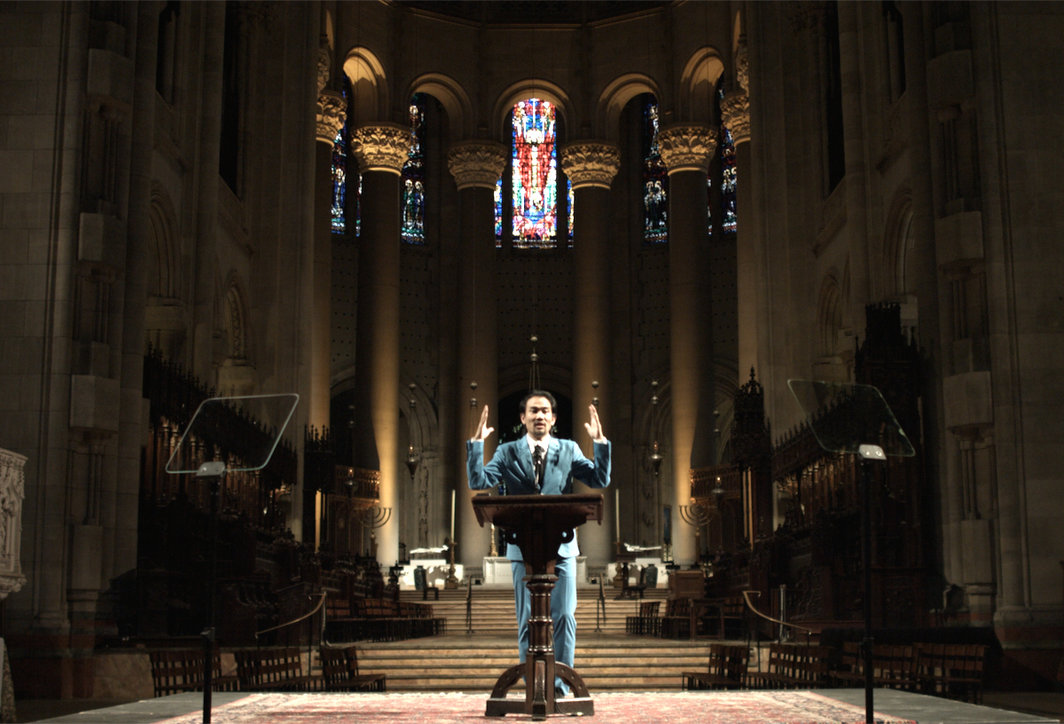 胡向前定于7月16日在圣约翰大教堂进行的行为艺术表演前一个星期,我到艺术家位于上东区的工作室拜访。我们坐在他潮湿的房间里,周围是若干盆高大的绿色植物;这是某个朋友做作品留下来的,他告诉我。胡向前接下来的表演将为他在纽约的六个月驻留划上句号,而且这个项目完全由他自己发起。亚洲文化协会赞助的驻留对胡向前的要求只有一个:跟当地社区交流互动。但每次只要我问起他驻留进行得怎么样,我都会问他的英语课如何。