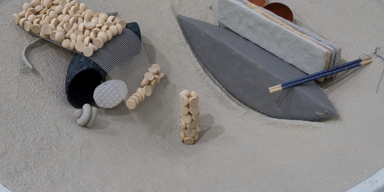 在李爽的新作《末日爱人》(2024)之前,我从未找到过一件能够准确表达Covid-19全球疫情对日常个体影响的当代艺术作品。这件硕大的装置让Prada荣宅首次启用了其所处历史保护建筑在百年前被用作客房的最顶层。一对大吊灯在昏暗的室内空间里闪着光,将原本就比楼下简朴得多的空间印衬得更加逼仄。华丽的大吊灯与明显处于附属地位的建筑空间在视觉和体感上唤起一种扭曲感:有些东西错位了。