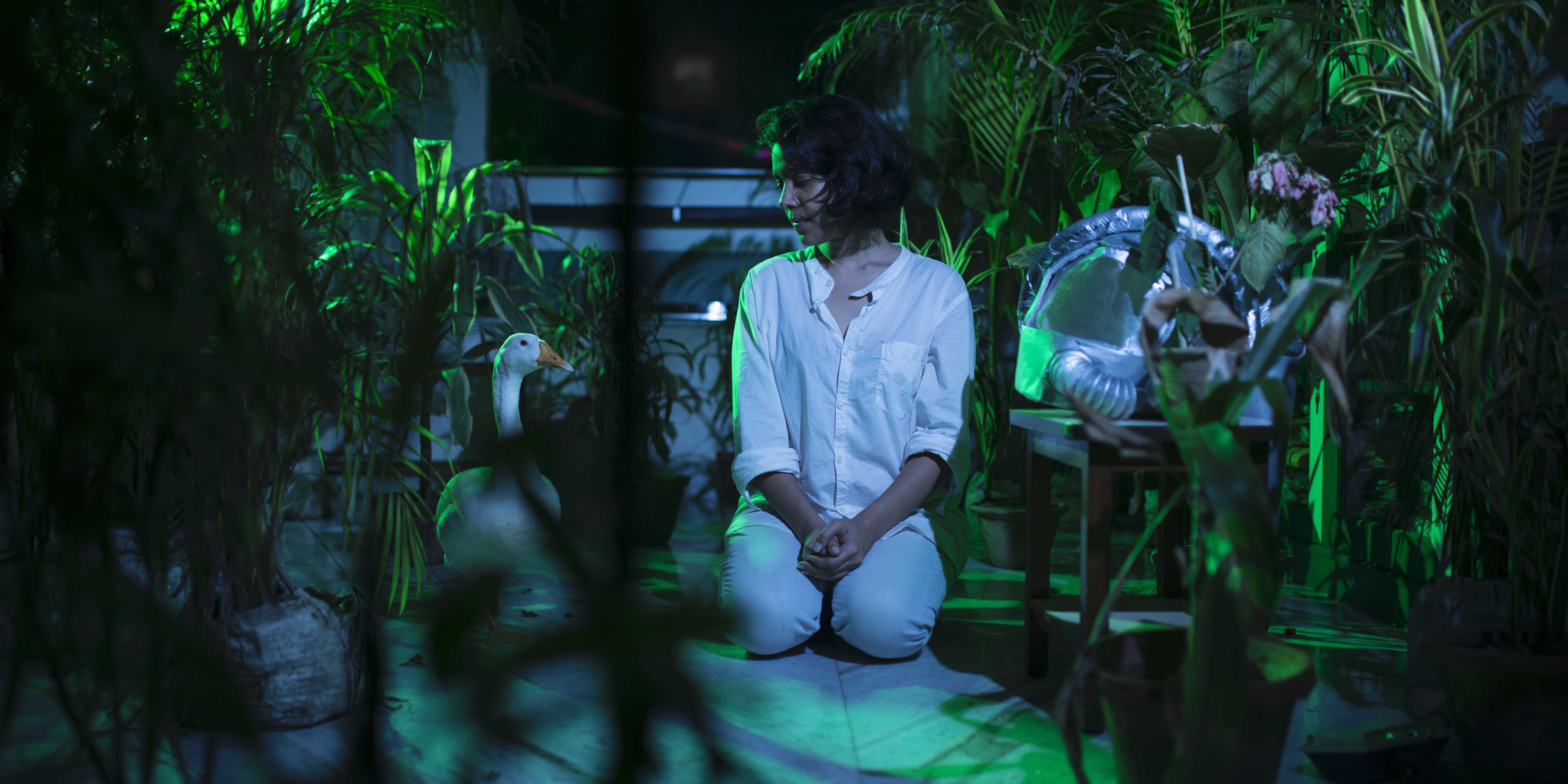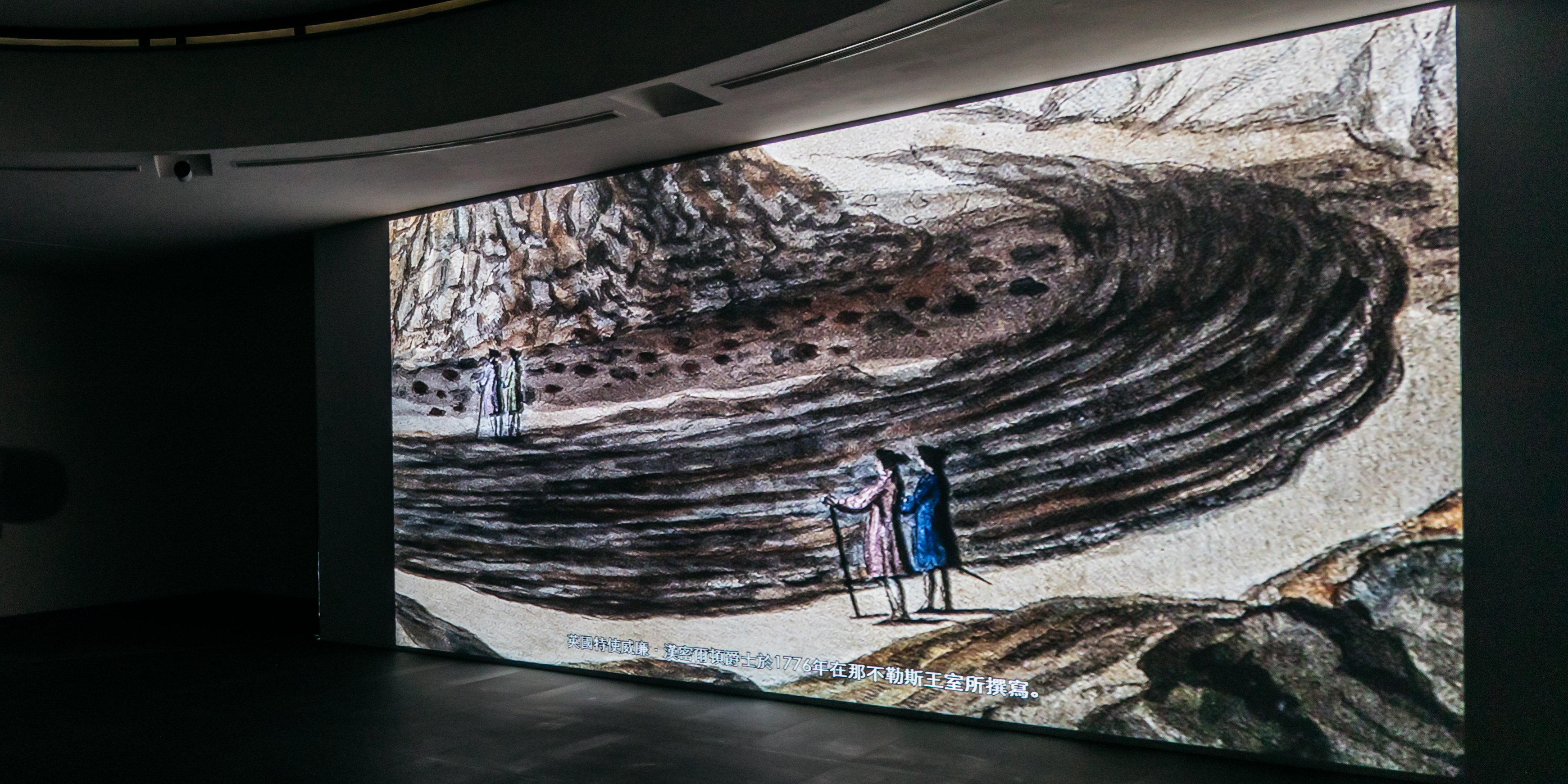 我的首站来到了MACAN美术馆,特展正展出定居万隆的日本艺术家今津景(Kei Imazu)在印尼的首次大型个展。展厅挑高的空间被蓝白相间的织品覆盖,通过灯光营造出波光粼粼的感觉,呼应展名“海面波涛不惊”(The Sea is Barely Wrinkled)。艺术家长期研究雅加达北部名为巽他格拉巴(Sunda Kelapa)的港口,这里正是荷兰东印度公司殖民印尼的起点。她通过装置与绘画描绘殖民历史如何持续交织于当下。绘画以殖民时期的地图与建筑拼贴出当地物种的图像,呈现一种超现实的风格。同时艺术家也颇具雄心地重建了一艘荷兰东印度公司首航即沉没的船只残骸局部,试图揭露殖民者失败的野心。展览尾端,一幅略高于视线的小巧绘画最得我心——描绘了与巽他格拉巴一河之隔的Muara