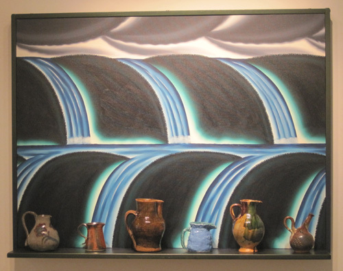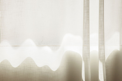 尤塔•巴斯(Uta Barth)新的摄影系列《……用光线描绘出亮白色的线条》(2011),微妙地偏离了她先前的创作。这件作品和她先前的两件作品《白色窗帘》(鲜红色,2002)和《日晷》(2007)一同在这次展览中展出。巴斯摄影的构成元素通常被降级为作品的背景:如《白色窗帘》(鲜红色)系列中苍白的天空,光秃秃的树木和电话线。又如,《日晷》中悬挂着的灯,芥末黄的沙发和充溢着光线的窗。她的影像很少包含人,但近来她开始在其中记录自己的在场,而这也冲击了被拍摄的景象。最近的系列作品标志着巴斯为了取得特殊效果,首次明显地运用了布景中身体的因素。两幅照片显示艺术家的手轻柔地拉扯着精致窗帘的褶皱,以便延展或缩短午后阳光投射其上而形成的曲折光线。