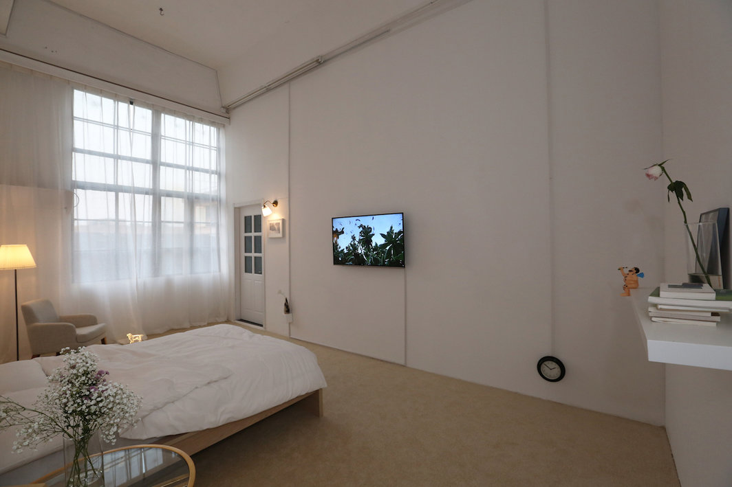 上海黄昏灰雾里的天空衬托着户外60寸屏幕上播放的三只风筝,它们在风里树间不规律地打转,互相追逐和躲避,你走上楼梯接近那里时便逐渐靠近了艺术家王满的首个个展“洪荒”,他用这件带有疏离感的录像《风的轨迹》(2016)热切地迎接你走进他真实而隐秘的情感世界。