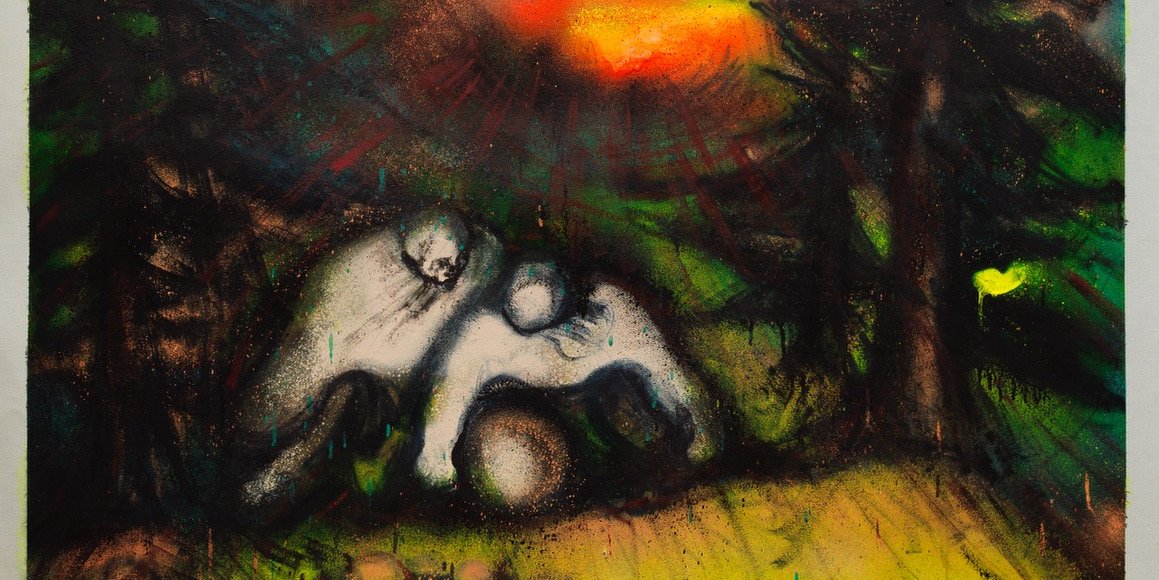 此次展览中,《陶(我是你的车,我在想你)》(2025)在画面前景勾勒了一位轮廓潦草的女性,她“手脚”并用地似乎想拼命将四个不同形态且方向各异的圈/球体拉到身边,与标题中暗含的“召唤”一同指向了智能电动汽车的服务系统,也让人联想到围绕这一技术产品的关税与补贴之争,及其背后的地缘政治博弈。散落的球体和代表车身的女性与再现“速度”或“保护”驾驶者的意象背道而驰。画面左上角向一侧倾斜的陶罐指涉了广东写实主义画家谢楚余在1997年完成的作品《陶》,后者中抱着陶罐的少女形象因被反复临摹、复制、出现在各种装饰品上,几乎成为一个大众文化符号。相较近三十年前,谢楚余在珠三角地区全面进入改革开放时,通过以“安格尔本土化”的画风刻画西域风情少女来直观地隐喻国际贸易给沿海地区带来的冲击,周思维画面中寥寥几笔的主体形象与错乱的光影关系不仅回应着外部语境的变化,也进一步揭示了他对学院派绘画语言体系的背离与“重塑”。