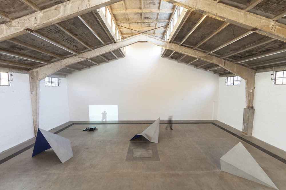 李继忠在黄边站的驻留总结展“郊外”现场出现了狭道、砖瓦、碎石及海洋的意象,此次展览是他“通向深海的狭道”系列的进一步延伸,处理的是日本在华细菌战以及由此造成的离散问题,其中尤其以曾经作为日军人体实验基地之一的广州南石头村难民营为叙事基点。此次李继忠以一个具体的行走路线串联起他的装置、行为和录像,赋予了所谓的“狭道”情感上的重量。除了我们熟悉的社会介入及田野调查式产出之外,李继忠还以行为艺术的方式重演了当年南石头难民营难民挖掘自己坟墓的悲剧性场面(《挖掘工》, 2019)。录像每个章的叙事都像是一个有序的维度碎片,补完他个人叙事中隐秘而复杂的细菌战研究逻辑。