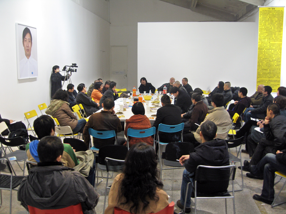 展览的重中之重可谓是张鼎的那件颇具野心的作品《秘密家族的航空餐》(2009)。从各种树木,到一只烤乳猪,到喷雾泡沫形成的人像,无不成为这位中国艺术明星所导演的癫狂歌剧中的一员。肖像变成了客人们放纵的一场晚宴。
