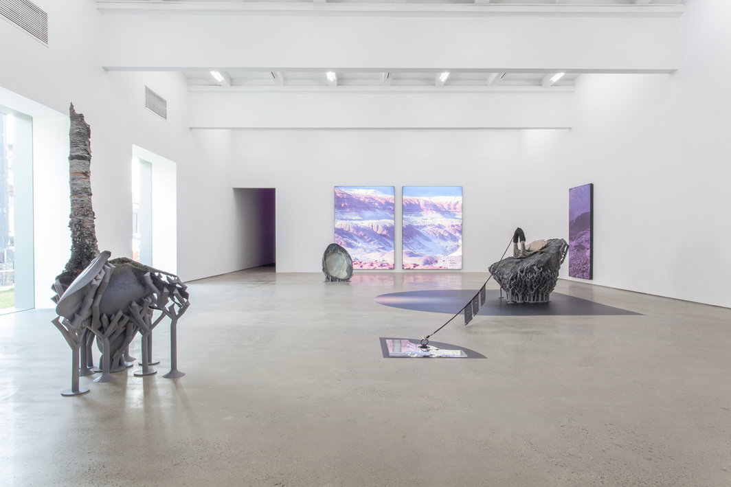 梁硕将此次展览视为一种“卧游”,这一传统观念是指古代文人将观赏山水画视为一种足不出户的神游方式。然而,梁硕的这些绘画也清楚表明,它们所唤起的那个理想化的前现代世界已然消弭:它不仅被工业化,而且充斥着媚俗的流行文化。当观众抵达曲径的中心时,他们可能会在寻找出口中略微迷失方向。这一结构有耍花招之嫌,但所幸作品仍然是朴实的。展览的不同元素融合在一起,使观众仿佛漫游在一种既自然又后工业、既田园又怪诞的风景中。