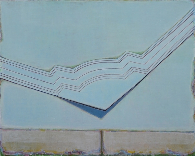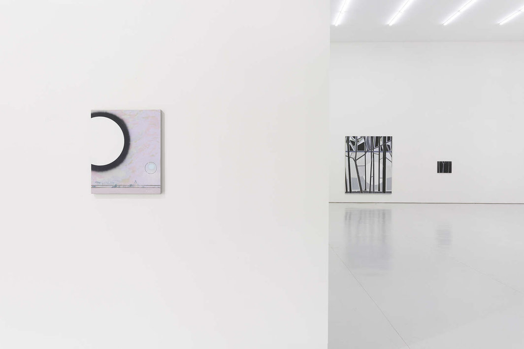 高露迪敏感于色彩明度增减所带来的视觉效果,对各种荧光色的使用很大程度上是为了调节观看节奏的变化:明度更强、色调更暖的色彩在视觉中会在空间中自动跳出,而明度较弱、色调较冷的色彩会退居后位。这种视觉规律在画面结构中也同样存在:一个圆形突然出现在充满直线的画面中,就成为了视觉中心。在一系列描绘风景的作品中,如《灰白圆》(2016)、《白月》(2016)、《辅路》(2016)等,绘画空间由多种成分构成,色彩和结构间的相互辉映决定了空间的层次。当艺术家有意去限制色彩的使用,把画面的色彩明度降低,加入更多的灰粉色系时,仍会下意识地使用类似的方法去构造画面,背后映射出现代主义艺术理念对艺术家根深蒂固的影响。然而,这种视觉游戏不可避免地带来一些后果,让绘画在不知不觉中走向一条个人趣味化的道路——现代主义画家们曾经沉迷于用变化无穷的色彩和线条制造赏心悦目的幻觉——我们对随之而来的威胁并不陌生:这种急剧膨胀的个体性在更大的系统映衬下却显得十分渺小,正是这种威胁在成就现代性的同时也一步步瓦解着现代性。