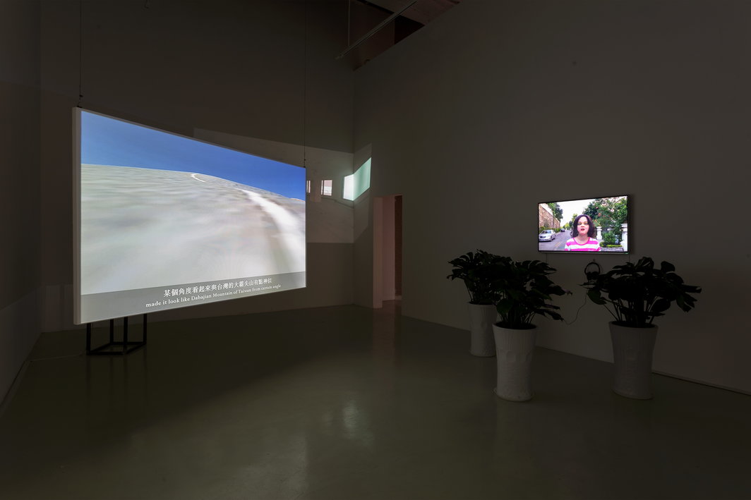 进门第一间展厅的两件作品——郑平平对野外植物作为描绘对象的抽象勾勒,陈卓融合了记忆与现实的景物照片——都提示着风景的主体性隐没于艺术家的精神领域,变成不具体和次要的成分。画面中所呈现的,是个人情绪的展露。而在大多数情况下,风景是艺术家想象力渲染的对象,是人们对空间和地域的感知桥梁。吴思嵚的《伊利萨山》(2016)制造了虚拟与现实的奇妙碰撞,主客观两种风景空间并置,一种存在于谷歌地图对山峦的三维模拟图景,另一种存在于画外音:一男一女在对话里所表现出的登山的真实体验。脚步声、喘气声,以及对目的地的向往等感知和意念被嵌入概念式的地图景观之中。这种奇异的分离感受从屏幕内延伸到了现实空间:三盆绿色植物沉默地放置于钟嘉玲的《无题家庭录像》(2012)正前方,围成一个倒三角的观看区域,视频里记录了一段中产阶级家庭妇女的日常生活,主体精神被隐匿的面具就像行尸走肉的生活本身,构成广义上的社会景观。这种异化的主客体关系在季俊的《鸟惊心》(2013)和《望厂之一》(2013)所营造的人造场景中变得更加模糊,主体意图更加隐晦,现实与虚拟间的微妙差异让人难以分辨。而刘张铂泷利用纪录性质的长镜头、新闻资料片段、画外音叙述等方式,对比上海迪士尼和北京石景山游乐园两个意象,将除观景者之外的其他主体引入风景之中,以旁观者的角度记录了东西方意识形态差异之下的风景和风景中的人群,将这种关系以更为理性客观的方法描述出来。