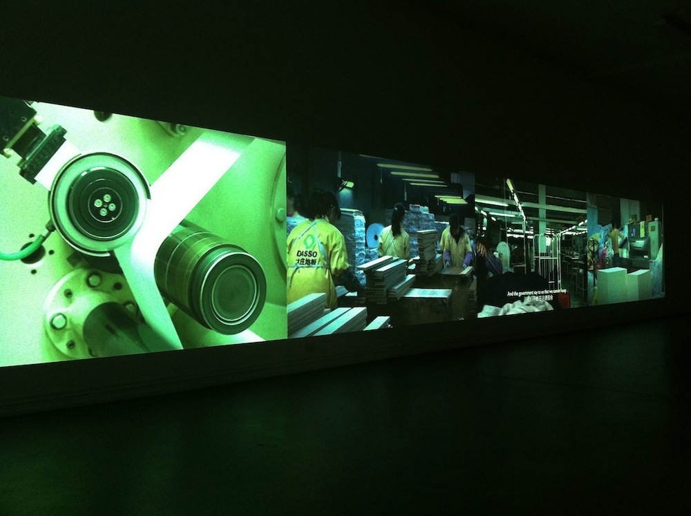 最初是从采访一个印刷工人开始的。当时在他的工作区找不到一个安静的地方,我就说要不来我的空间吧。最开始他特别不自然,然后我把摄像机放在边上,完全当它不存在。在我问到他一些问题的时候,他脸上总会出现一些很奇怪、很复杂的情绪。这种情绪其实我也能理解,但是我想更深入地了解他,我就说可不可以去他的工厂里面看看,他马上就答应了。一到他的工厂就什么都不需要说了:这个环境就会产生这样的表情。但当时我看到的都是非常漂亮的东西——这个机器很漂亮,那个机器很漂亮,它们的运动非常漂亮,所以我很兴奋地把这些都拍下来了。拍完之后我也不知道怎么处理这些素材,放了几个月吧,后来我想到,其实人跟机器是一种完全平行的关系,有时交错在一起,我想采用切片的方式——人、机器,人、机器——把他们穿插起来。我试了以后觉得效果挺好,让人产生又真实又虚幻的感觉,就沿用这种方式继续拍,拍了后面的老板、主任,等等。