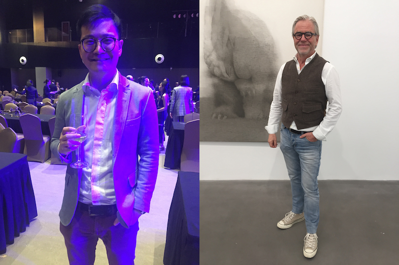 第二天,在北京画廊周的晚宴开始前,我们尽量把能看的展都看了。常青画廊展出的是卡斯滕·霍勒(Carsten Höller)的巨型蘑菇雕塑、灯光装置和笼中鸟。刘韡在长征空间的个展“幻影”上展出的缓慢围绕几何模块运动的沉重球体是对重力的一次精彩展示。北京公社展出了理查德·迪肯(Richard Deacon)的新雕塑作品,博而励画廊的群展中五位居住在柏林的艺术家“拥有和当下北京气场相通的能量”,画廊创办人Waling Boers说。偏锋新艺术空间的展览让约翰·麦克林(John McLean)与王剑的绘画“相遇”(麦克林的作品是彩色的,而受夜行火车启发的王剑的绘画则是黑白的)。当代唐人艺术中心的两个空间都在展出朱金石的作品,包括他独特的“厚涂绘画”和一艘壮观的宣纸船。