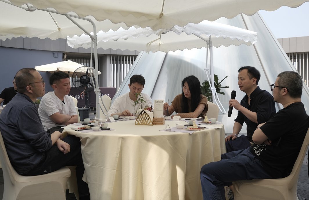 这种形式跟和美术馆的气质挺协调,也与顺德这个美食之乡对得上味道。不过这种介乎公开对谈与席间私聊之间的茶局,似乎还需要更多练习,才能让大家习惯这种既要放松又得“营业”的状态。当然,香茶美食总是令人愉快,这个在天台的上午,也让我有了些漂浮的感觉。