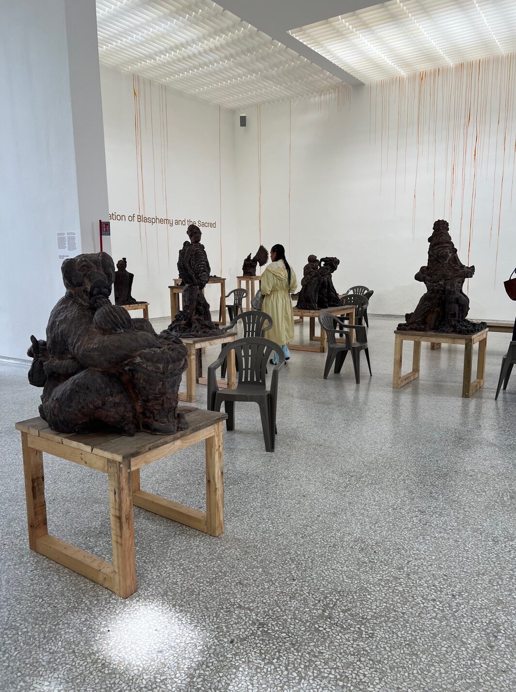 去殖民、反战和反监禁的作品共同构成今年国家馆中意义最迫切的贡献。 在艺术团体“刚果种植园工人艺术联盟”(Cercle d’Art des Travailleurs de Plantation Congolaise / CATPC)的雕塑前,项目发起人伦佐·马滕斯(Renzo Martens)告诉我:“西方机构仍在思考如何处理他们继承的不健康的特权。 但有趣的是,决定如何处理这个问题的仍然是(西方)博物馆的策展人们。是时候让这些社群自己拥有决定权了。”