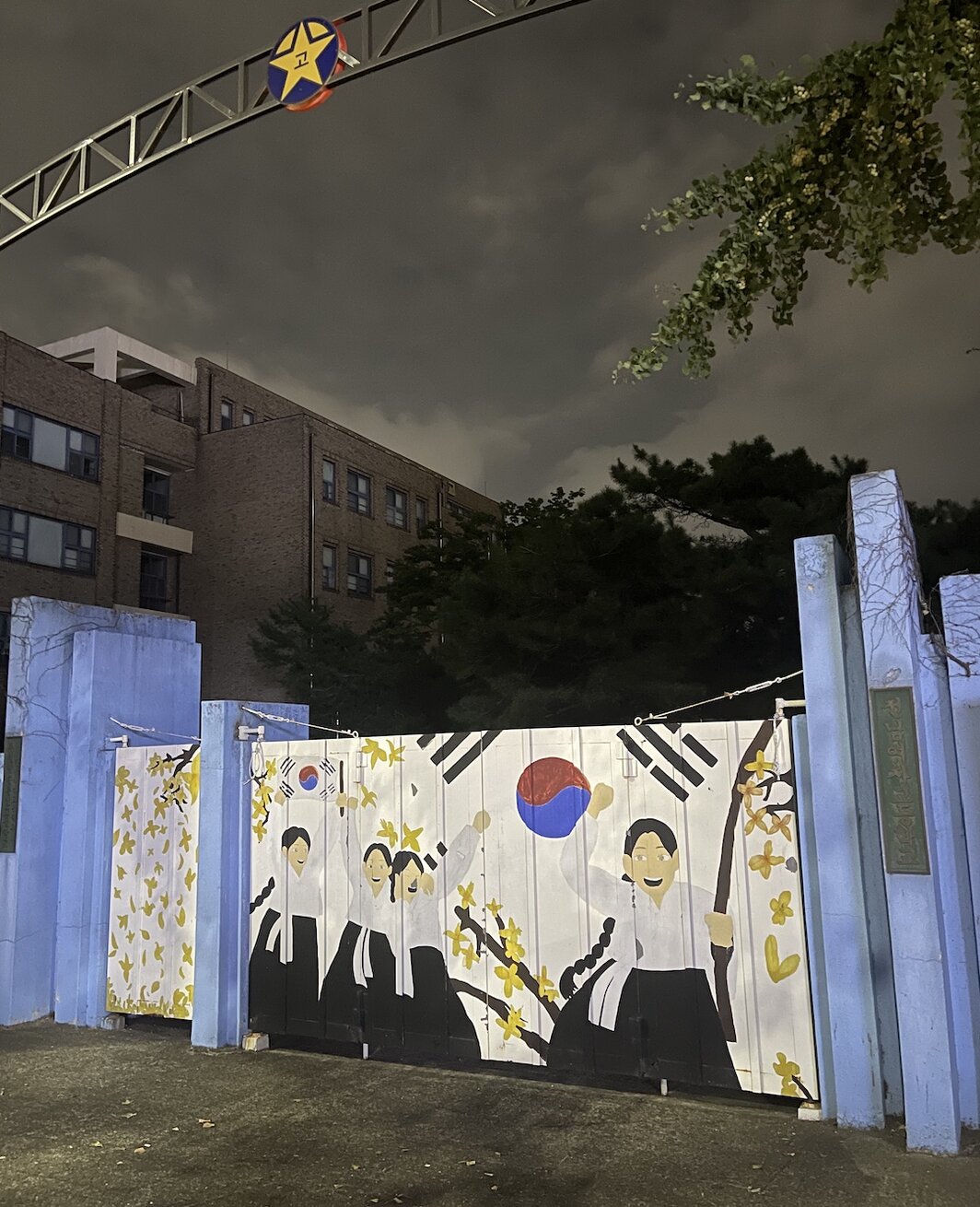 晚上吃饭时,我问Karen Smith是否曾预料到社会氛围会变成今天的样子,她说没想到。我说,自己2010年刚到香港的第一天,博导就跟我说要做好“世界大乱”的准备,我当时根本不理解他在说什么。宵夜后,和大家告别独自回旅馆,刚转过热闹的夜店街区,路边绿化带出现一排不经意的纪念碑,原来是全南女子高中旧址——光州学生独立运动发源地。碑上的纪念文字详细介绍了这里的女学生在近百年的各个反抗运动中的事迹,她们开办读书会、工人夜校、女子武装,最后以相似的方式牺牲。